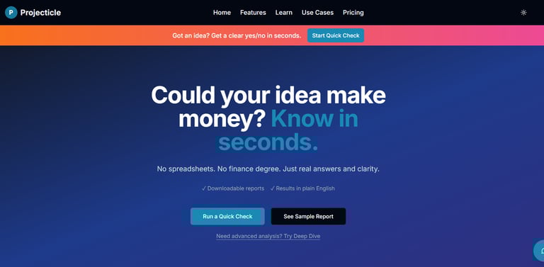 Projecticle is an AI-powered project evaluation tool built for business owners, consultants, and teams.
